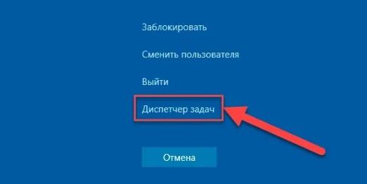 - Зажмите комбинацию клавиш «Ctrl+Alt+Del» вместе и в коротком меню принудительного выхода выберите раздел «Диспетчер задач».